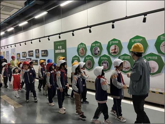 全地埋設(shè)計不僅將污水處理構(gòu)筑物全部隱藏于地下,更通過密閉空間對設(shè)備噪聲進(jìn)行收集處理,對臭氣實施100%集中凈化,徹底打破了“污水處理廠=臟臭源”的固有認(rèn)知。 更令人欣喜的是,這座綠色工廠已成為傳播生態(tài)文明理念的重要載體。作為合肥市生態(tài)環(huán)境教育基地,胡大郢凈水廠每年舉辦超過20場“節(jié)水課堂進(jìn)校園”活動,把“一滴污水的低碳之旅”故事送進(jìn)十余所中小學(xué)。孩子們通過樂高模型模擬污水處理流程,在寓教于樂中種下綠色發(fā)展的種子。 在胡大郢凈水廠“國企開放日”活動中,孩子們戴著安全帽穿越地下處理車間,直觀見證污水處理的“碳足跡消弭”過程?!拔鬯兦逅穆贸?,也是碳減排的旅程?!敝赡鄣穆曇衾?,飽含著對未來綠色生活的向往。 從地下到地上,從治理到教育,胡大郢凈水廠以創(chuàng)新的立體布局、先進(jìn)的環(huán)保技術(shù)、生動的科普實踐,走出了一條生態(tài)優(yōu)先、綠色發(fā)展的新路徑。它不僅是環(huán)巢湖生態(tài)保護(hù)的一張“活名片”,更是新時代城市與自然和諧共生的生動注腳。在這片曾經(jīng)可能被視為“邊緣地帶”的土地上,正在上演一場關(guān)于綠色轉(zhuǎn)型、空間重構(gòu)與生態(tài)文明的時代敘事。