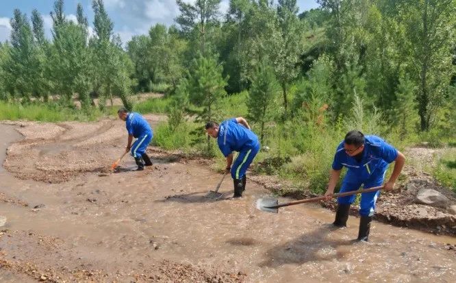 風(fēng)電公司洗馬林10萬(wàn)千瓦風(fēng)電場(chǎng)運(yùn)維人員對(duì)存在積水積沙積石的溝道進(jìn)行清理