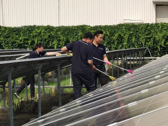 雖然天氣非常炎熱,但大家充分發(fā)揚(yáng)不怕累、不怕臟精神,爭先恐后,干勁十足,仔仔細(xì)細(xì)地對組件上的灰塵、砂石、鳥類糞便進(jìn)行清洗。經(jīng)過1個多小時的奮戰(zhàn),同志們流出的汗水有了成效,組件換了新顏,現(xiàn)場共計(jì)清洗了約1080塊組件,月度發(fā)電量約能提高1909KWH。 不忘初心、牢記使命。此次主題黨日活動實(shí)現(xiàn)了黨建與經(jīng)營相結(jié)合,鼓舞了黨員士氣,增強(qiáng)了大家的黨性修養(yǎng),取得了良好效果。黨員們紛紛表示今后要積極發(fā)揚(yáng)勞動精神,爭做提質(zhì)增效的貢獻(xiàn)者、踐行者和先行者,帶動廣大職工群眾積極參與到提質(zhì)增效專項(xiàng)行動中來,以實(shí)際行動助力鎮(zhèn)江公司提質(zhì)增效。 ?
