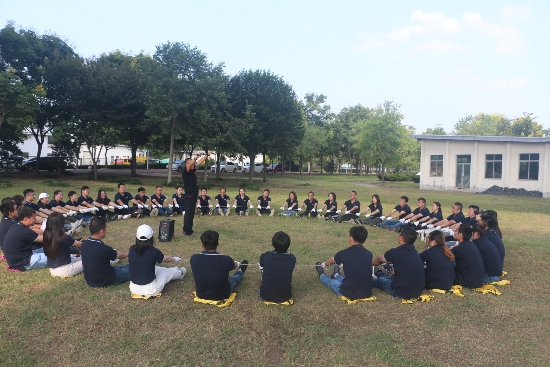 ? ? ? 如果說“急速60秒”項目考驗的是團隊的分工配合,那么“團結(jié)能量圈”考驗的不僅是團隊之間的配合協(xié)作,更是對個人能力與素質(zhì)的極大挑戰(zhàn)。在持續(xù)的高溫暴曬下,所有學(xué)員圍成一圈,雙手緊握繩圈,并完成一系列如蹲下、起立、后仰等動作。