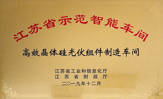 2020年獲得江蘇省示范智能車間-高效晶體硅光...
