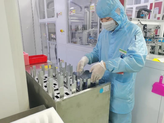 制絨上料員把硅片上至料盒內(nèi)