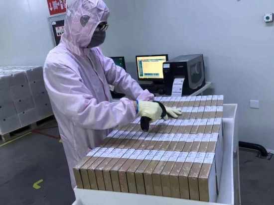 包裝好的電池片整盒掃碼作業(yè)