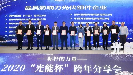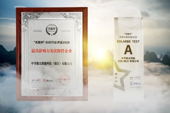 ? ? ? 2021年3月3日,第八屆“光能杯”跨年分享會于在江蘇蘇州成功舉辦。中節(jié)能太陽能科技(鎮(zhèn)江)有限公司(以下簡稱中節(jié)能太陽能鎮(zhèn)江公司)受邀出席并榮獲“最具影響力光伏組件企業(yè)”,鑒衡、索比聯(lián)合頒發(fā)的組件評測大獎“值得信賴組件企業(yè)”2個獎項(xiàng)。