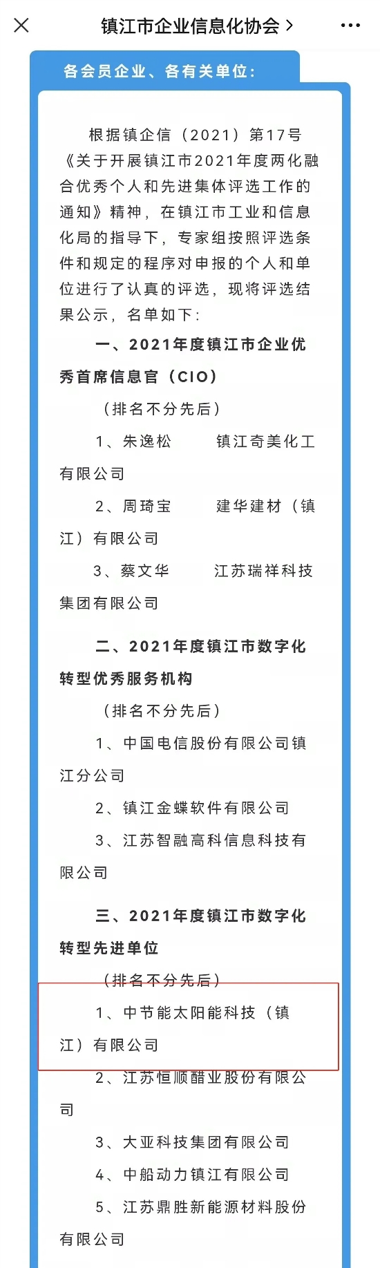 鎮(zhèn)江公司榮獲2021年度鎮(zhèn)江市數(shù)字化轉(zhuǎn)型先進(jìn)單位 |
