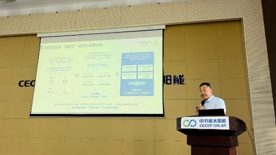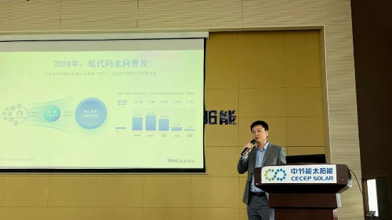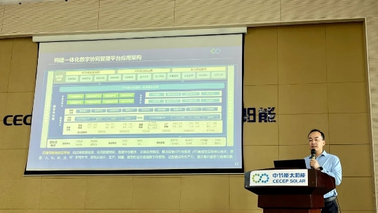 鎮(zhèn)江公司首席信息官李寧作《數(shù)字技術(shù)賦能光伏企業(yè)綠色發(fā)展》主題演講,從項目的背景及項目建設(shè)意義、數(shù)字化轉(zhuǎn)型戰(zhàn)略規(guī)劃、平臺應(yīng)用架構(gòu)搭建等方面,分享了公司近5年來的一系列的數(shù)字化轉(zhuǎn)型核心舉措,并重點介紹了中節(jié)能5G+光伏智造與智維融合創(chuàng)新工業(yè)互聯(lián)網(wǎng)云平臺及針對光伏行業(yè)痛點的相關(guān)解決方案和實施落地的場景。