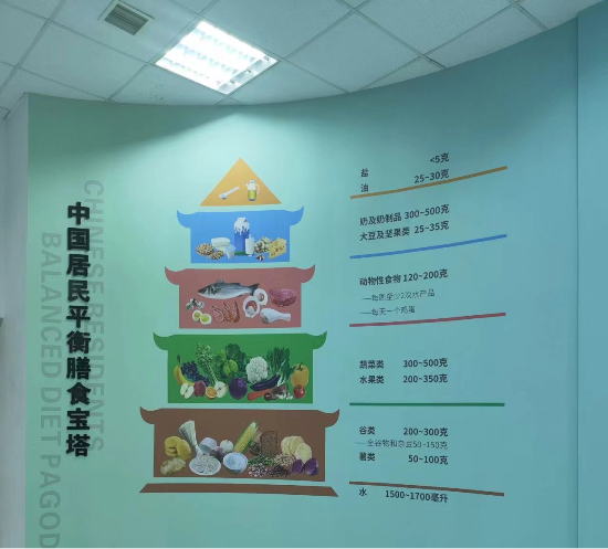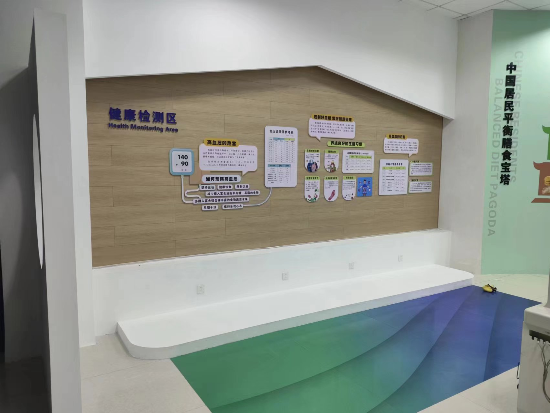 該區(qū)域配置健康一體機(jī),可以完成心電圖、血糖、血壓、血氧飽和度、脂肪含量及身高體重等15項(xiàng)檢查,檢測(cè)結(jié)果可以形成檢測(cè)報(bào)告,隨時(shí)可通過(guò)手機(jī)端查看,檢查過(guò)程方便快捷,職工隨時(shí)可以監(jiān)測(cè)自己的健康狀況。 營(yíng)養(yǎng)健康角