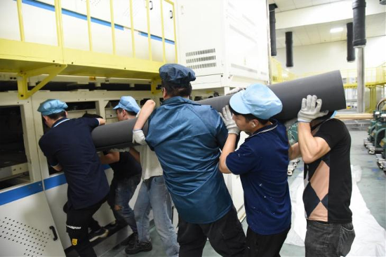 艱苦卻無畏 一整張硅膠板,需要6-8名小伙子用盡全力才能抬起。在有限的空間內(nèi),他們演繹著力量與協(xié)調(diào)的舞蹈,將硅膠板精準(zhǔn)地送入層壓機。盡管汗水濕透了衣衫,盡管環(huán)境艱苦,但他們的眼神中卻沒有任何怨言和退縮。他們?nèi)褙炞⒌赝度氲焦ぷ髦?,用實際行動詮釋著勞動者的堅韌與毅力。
