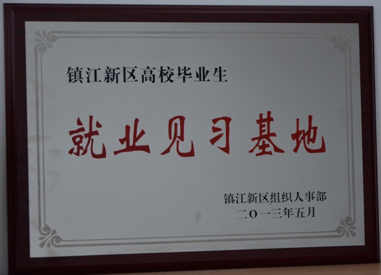 In May 2013, the company was awarded "Zhenjiang New Area University Graduate Employment Training Base" by the Ministry of personnel of the New District of Zhenjiang "